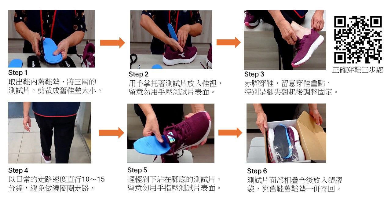 將測試片寄到家中,走路10~15分鐘後即可測得足步情況。